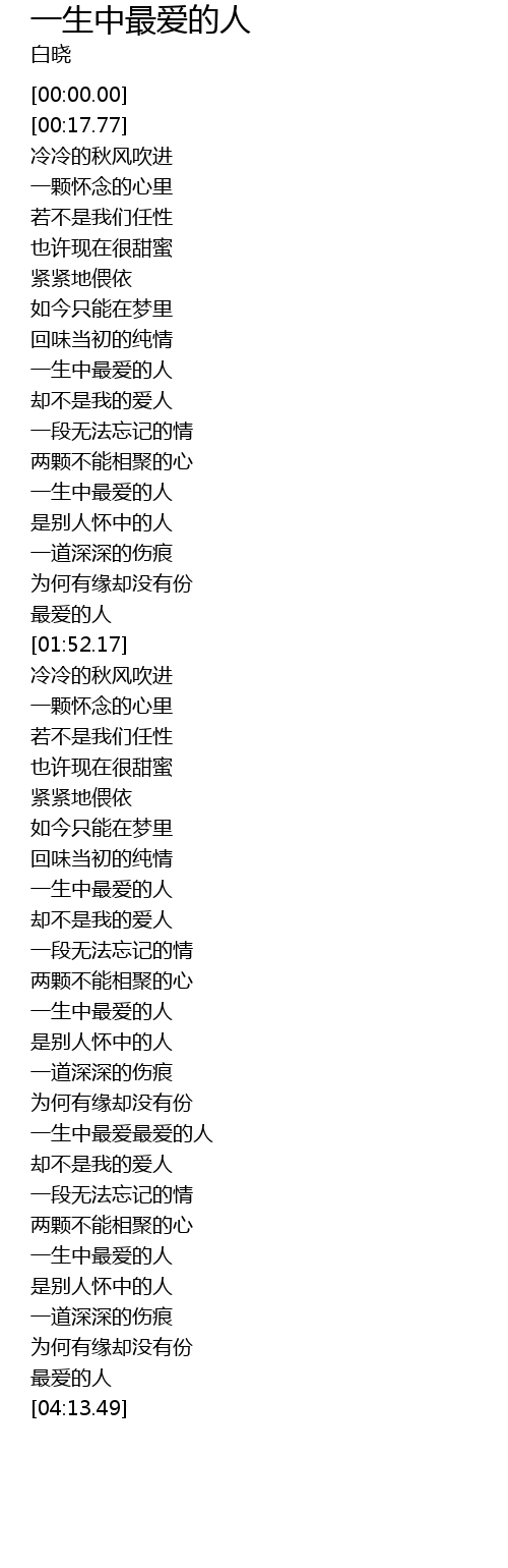 | [03:50.09] | yi sheng zhong zui ai de ren |