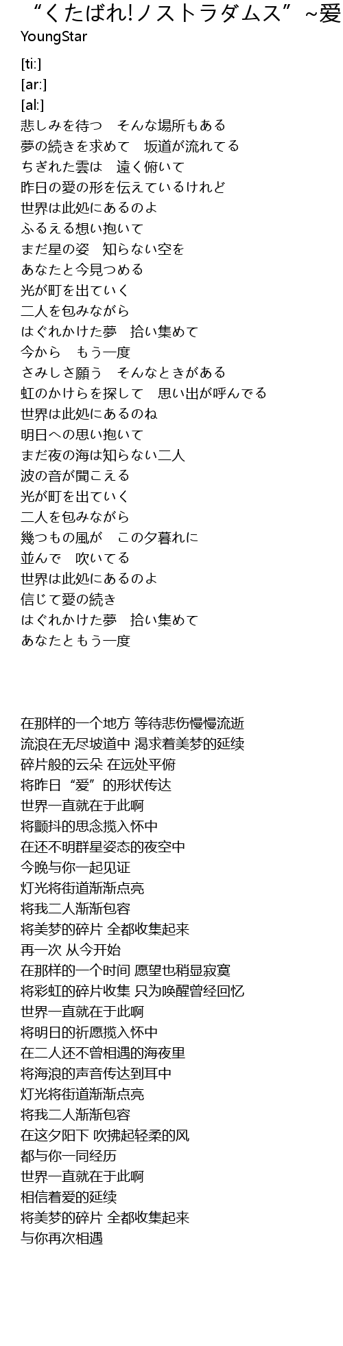 | Song | “くたばれ!ノストラダムス”~爱のつづき |