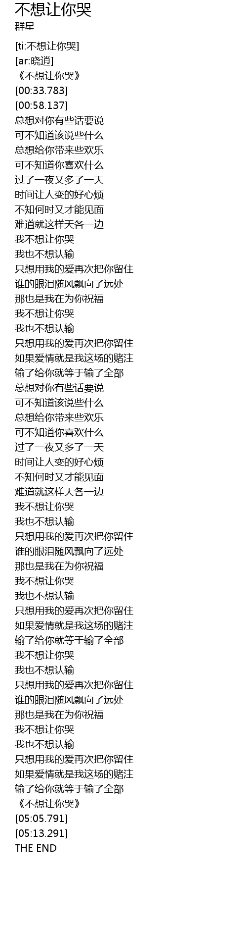 | [00:01.533] | bù xiǎng ràng nǐ kū |