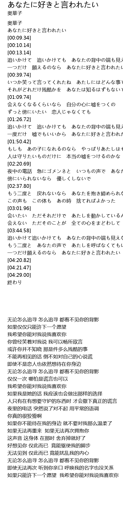 | [00:04.55] | あなたに好きと言われたい |