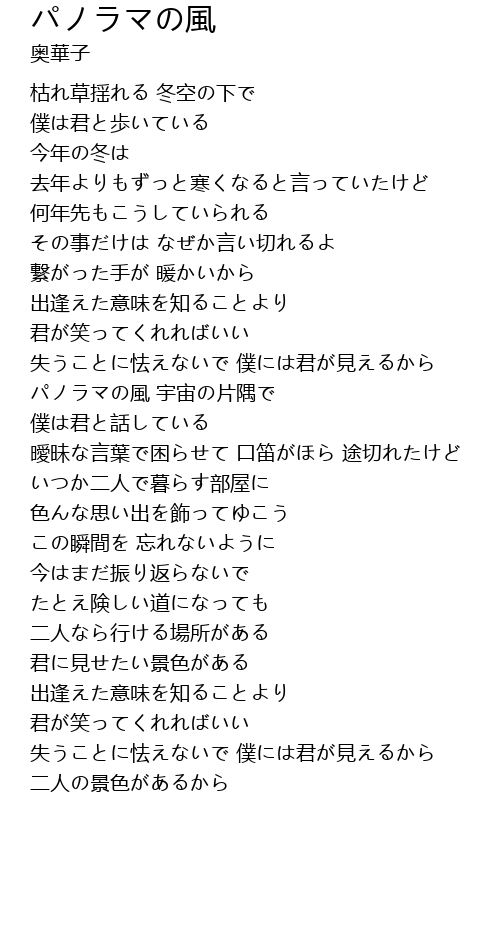 | [01:45.850] | パノラマの風 宇宙の片隅で |