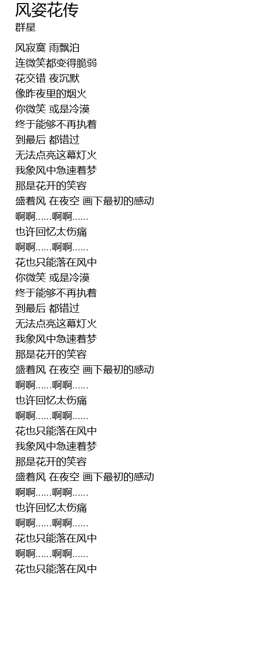 | [03:25.33] | 花也只能落在风中 |
