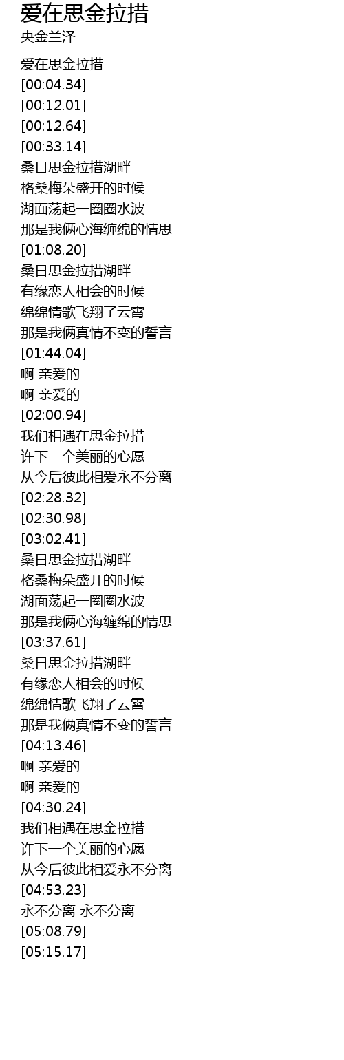 | [00:34.44] | 桑日思金拉措湖畔 |
