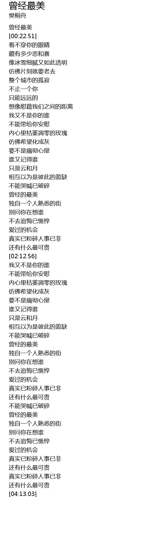 | [03:33.17] | 曾经的最美 |