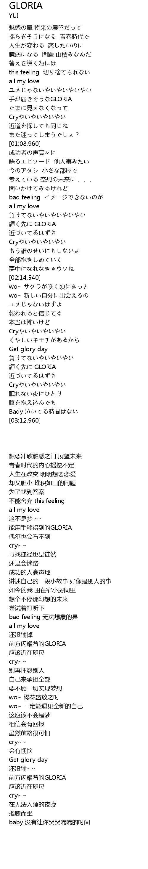 | [00:53.000] | 手が届きそうなGLORIA |