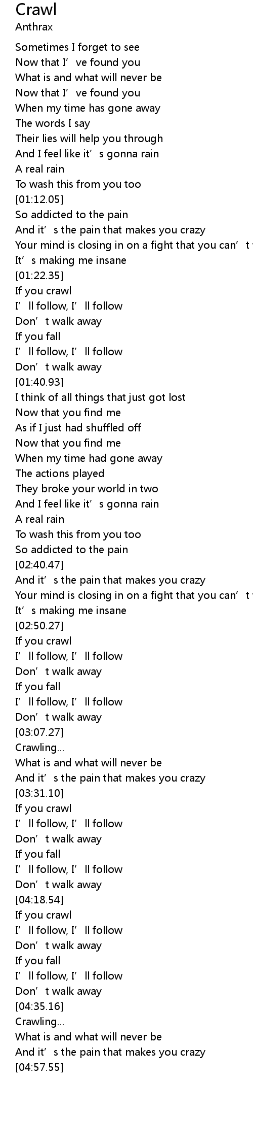 | [04:18.85] | If you crawl |