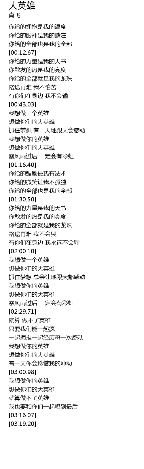 | [02:19.89] | 想做你们的大英雄 |