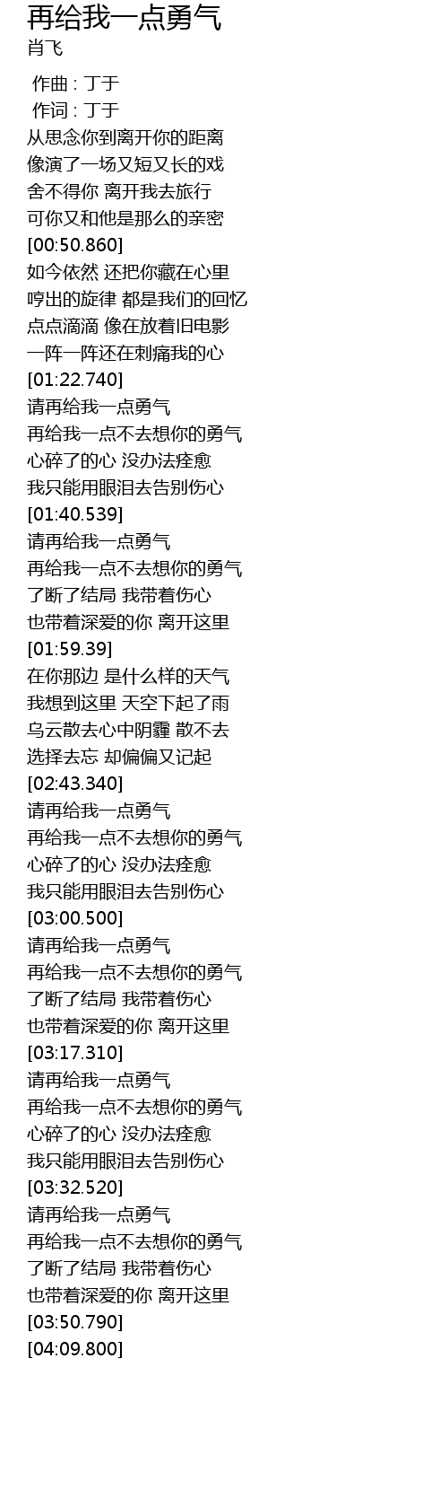 | [03:04.540] | 再给我一点不去想你的勇气 |