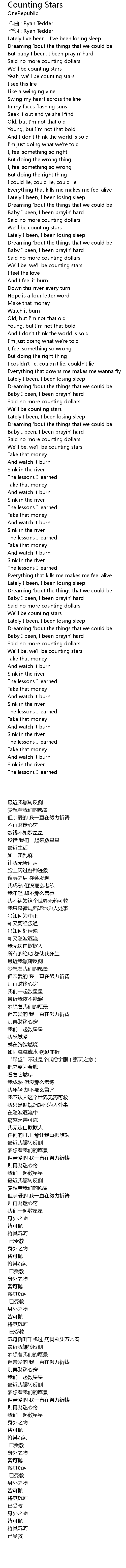 | [00:00.00] | 作曲 : Ryan Tedder |