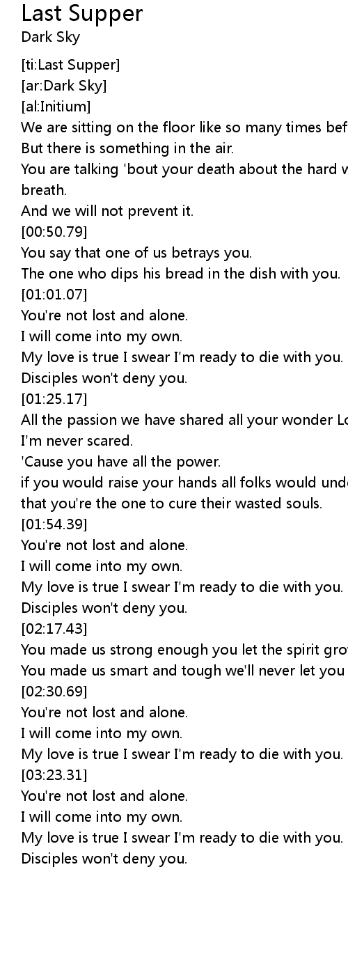 | [01:34.54] | All the passion we have shared all your wonder Lord. |