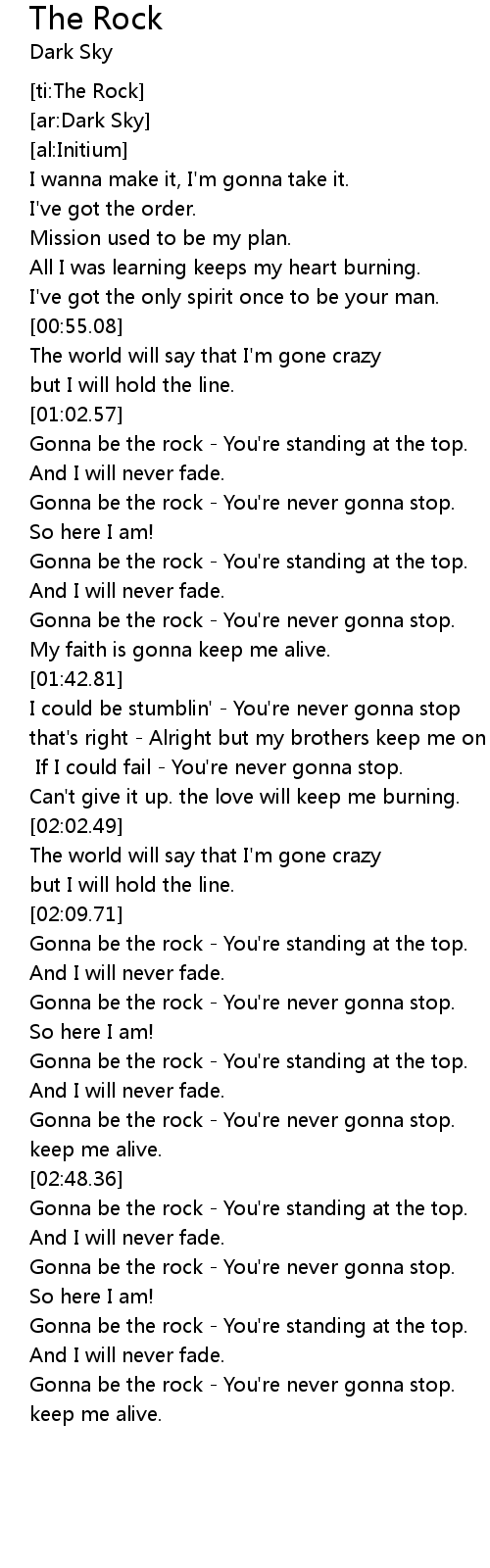 | [03:48.40] | Gonna be the rock - You're never gonna stop. |