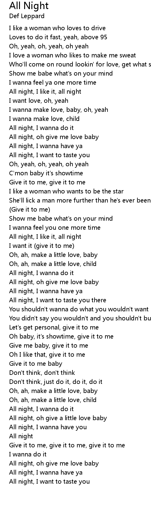 All night, oh give me love baby |