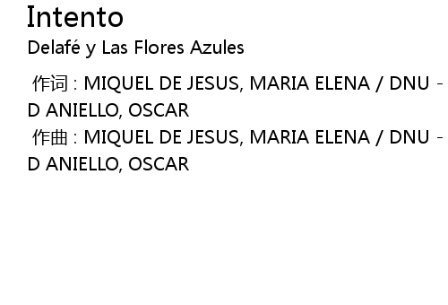 | [00:00.000] | zuo ci : MIQUEL DE JESUS, MARIA ELENA DNU ACEDO BLANCO, DANIEL D ANIELLO, OSCAR |