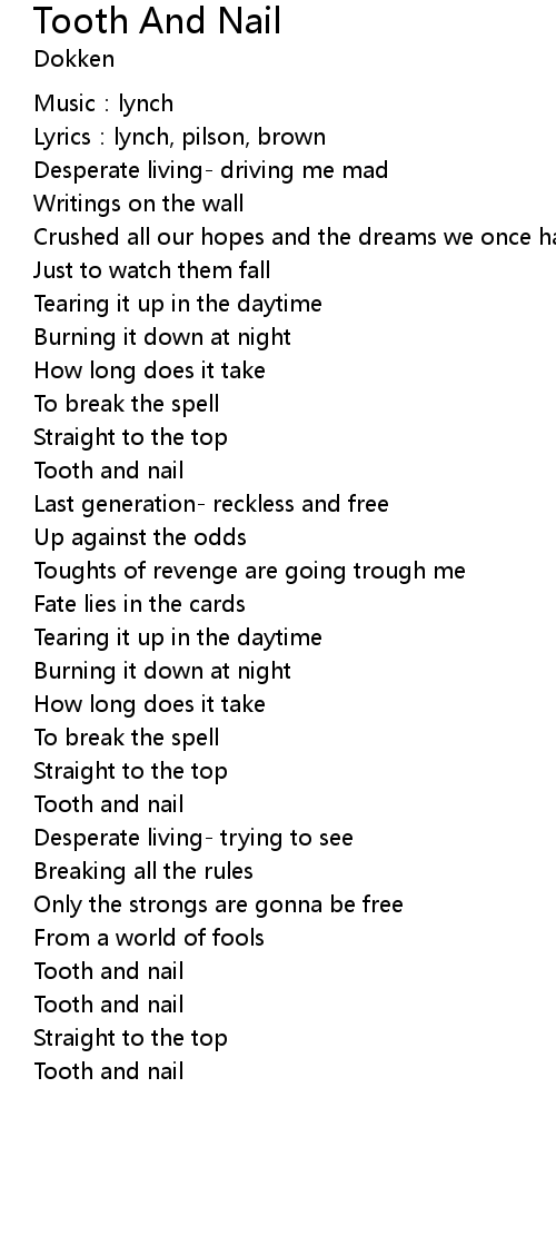 | Tooth and nail | |