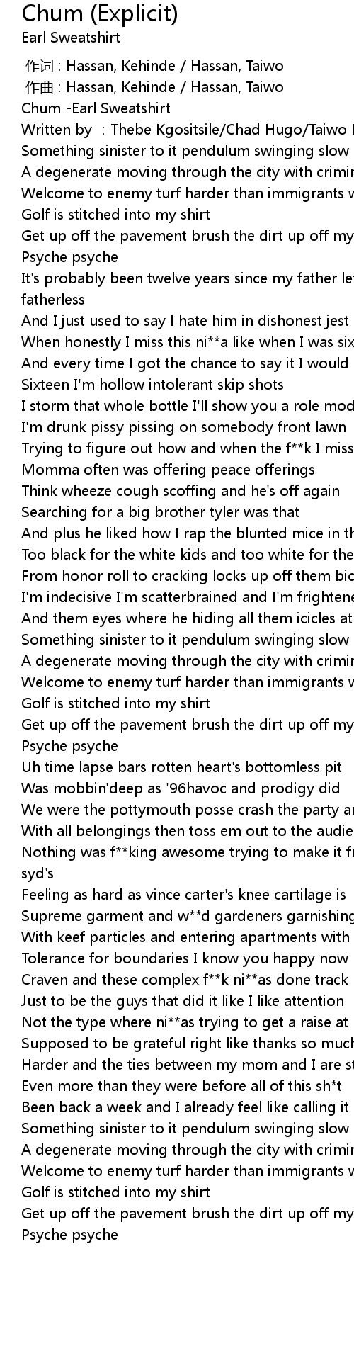 | [00:00.00] | Chum -Earl Sweatshirt |