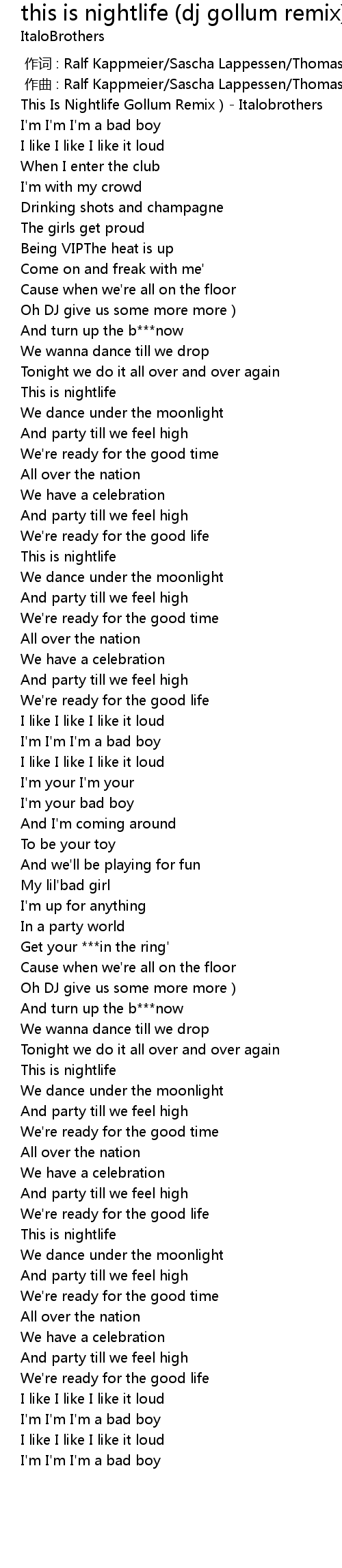 | [00:00.10] | This Is Nightlife Gollum Remix Italobrothers |