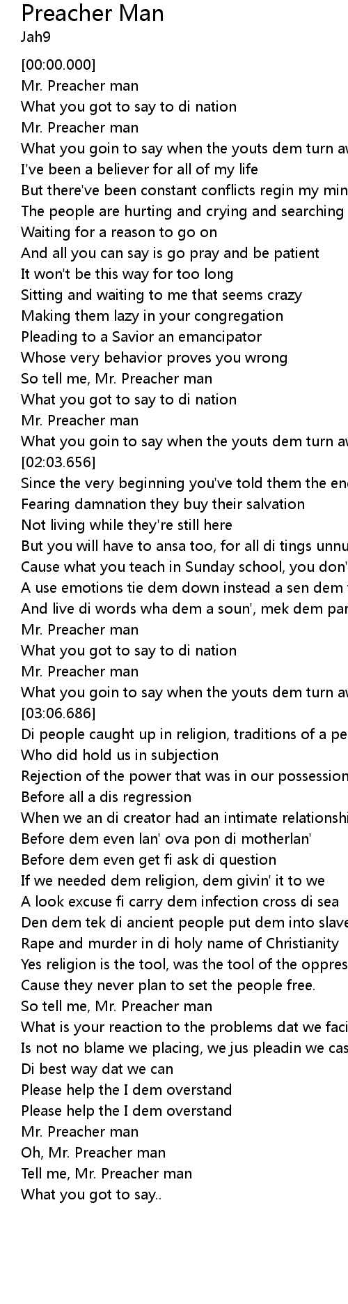 | [00:51.298] | Mr. Preacher man |