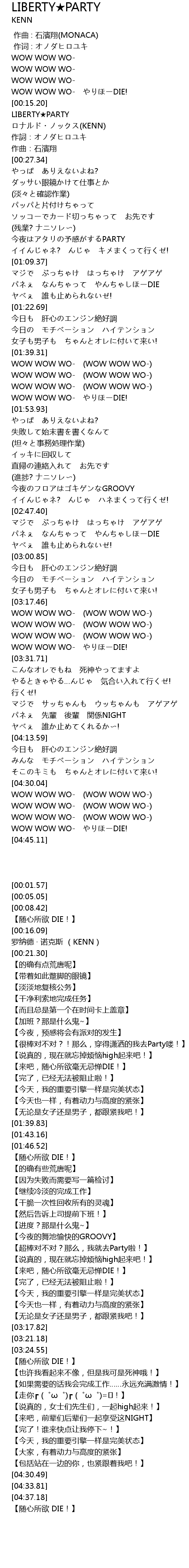 | [00:11.86] | WOW WOW WO- やりほーDIE! |