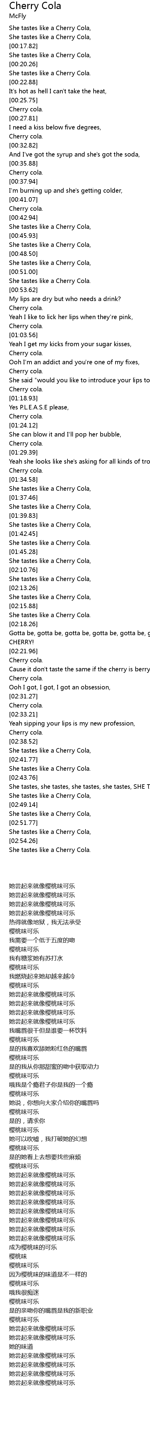 She tastes like a Cherry Cola, |