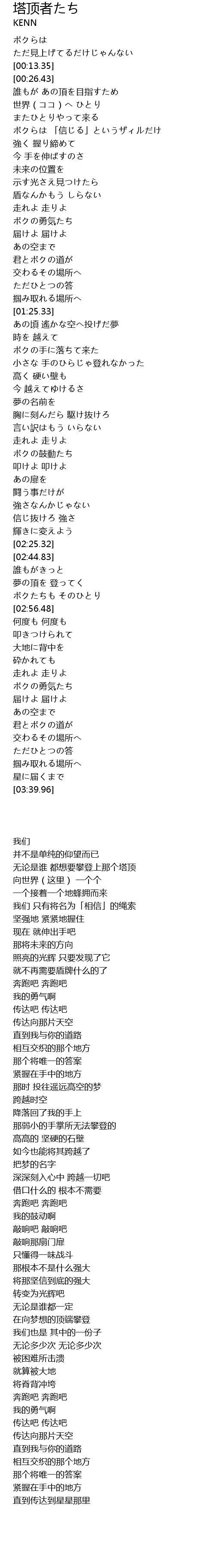 | [00:28.43] | 誰もが あの頂を目指すため |