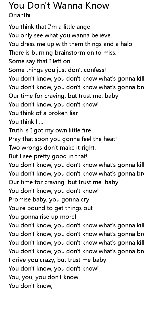 You, you, you don't know |