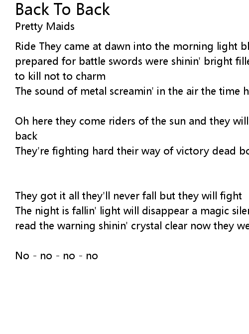 Oh here they come riders of the sun and they will fight back to back - back to back |