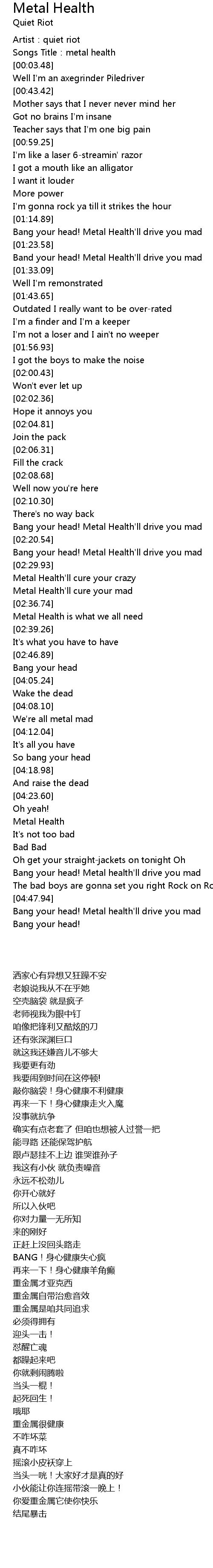 | [02:22.10] | Bang your head! Metal Health' ll drive you mad |