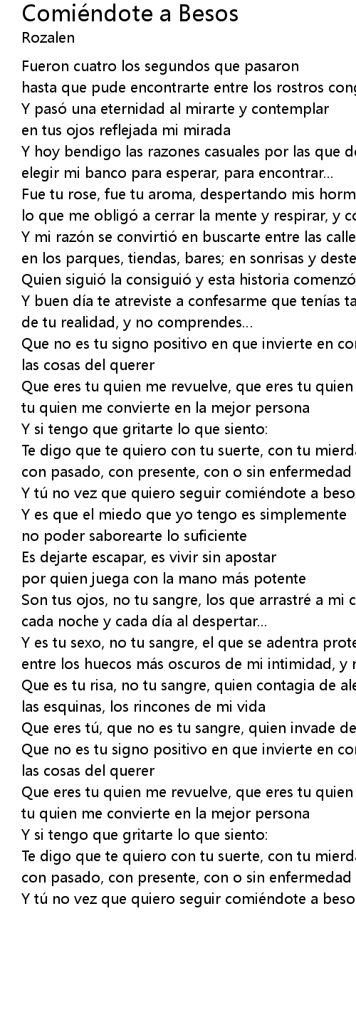 | Y tú no vez que quiero seguir comié ndote a besos | |