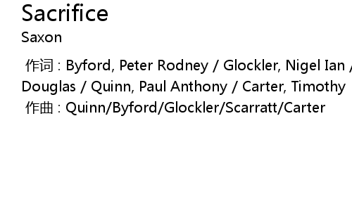| [00:00.000] | zuo ci : Byford, Peter Rodney Glockler, Nigel Ian Scarratt, Douglas Quinn, Paul Anthony Carter, Timothy |