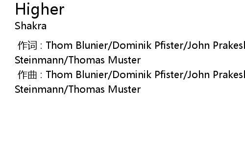 [00:00.000] 作曲 : Thom Blunier/Dominik Pfister/John Prakesh/Thomas Steinmann/Thomas Muster