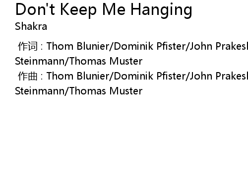 | [00:00.000] | 作词 : Thom Blunier/Dominik Pfister/John Prakesh/Thomas Steinmann/Thomas Muster |