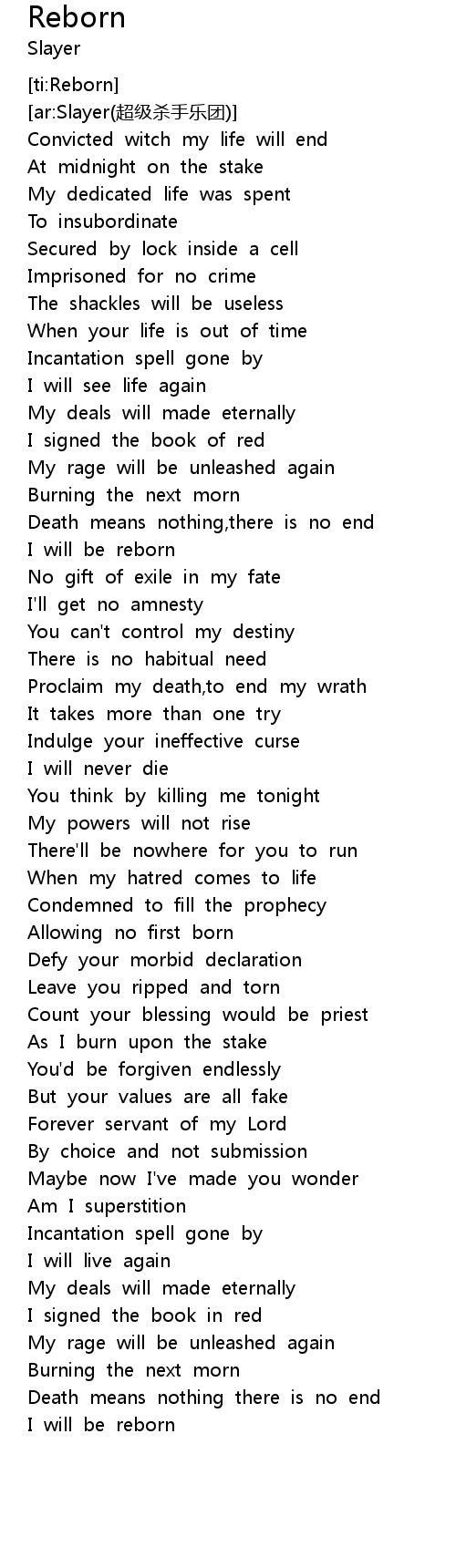 | [00:49.728] | Proclaim my death,to end my wrath |