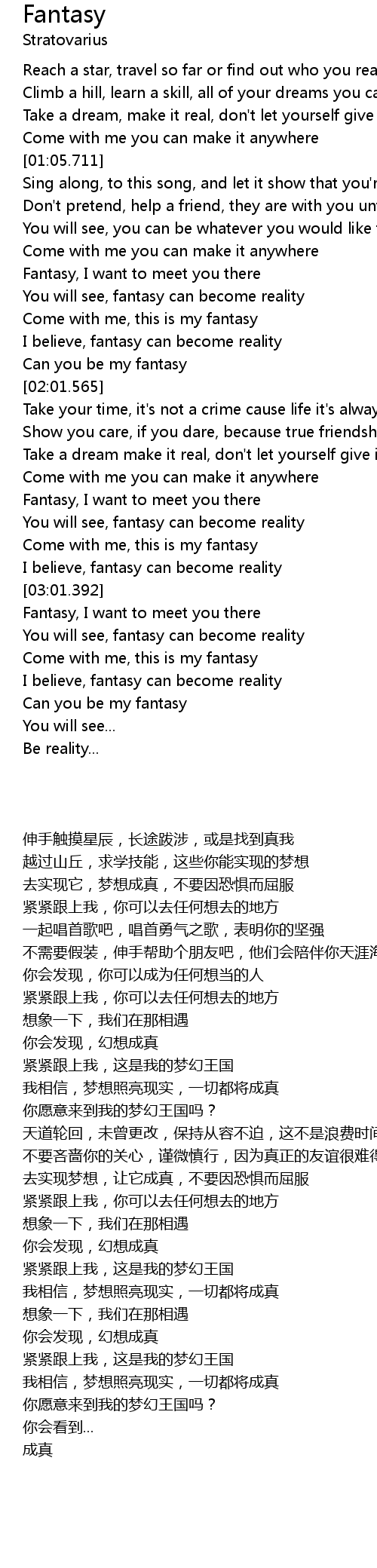 Fantasy, I want to meet you there |