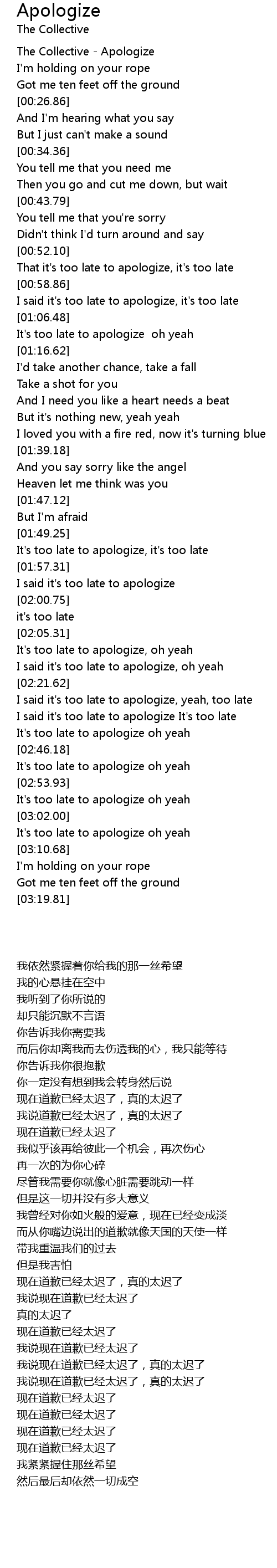 The Collective - Apologize |