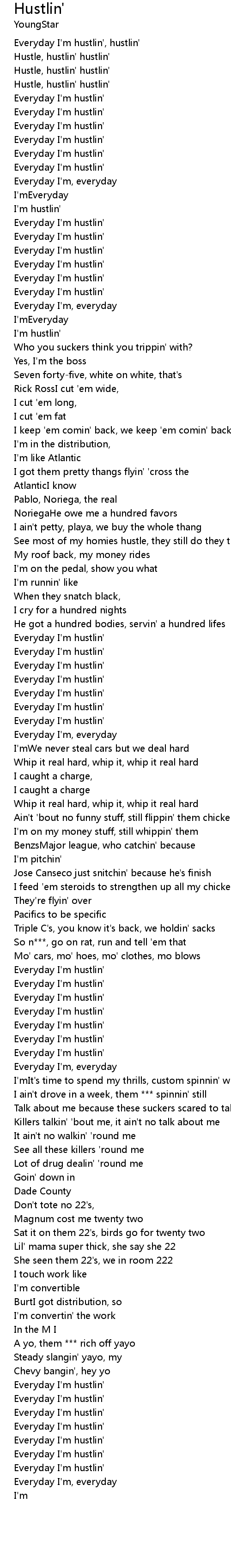 Mo' cars, mo' hoes, mo' clothes, mo blows |