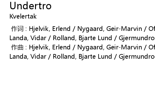 | [00:00.000] | zuò qǔ : Hjelvik, Erlend Nygaard, GeirMarvin Ofstad, Maciek Landa, Vidar Rolland, Bjarte Lund Gjermundroed, Kjetil Haugland |