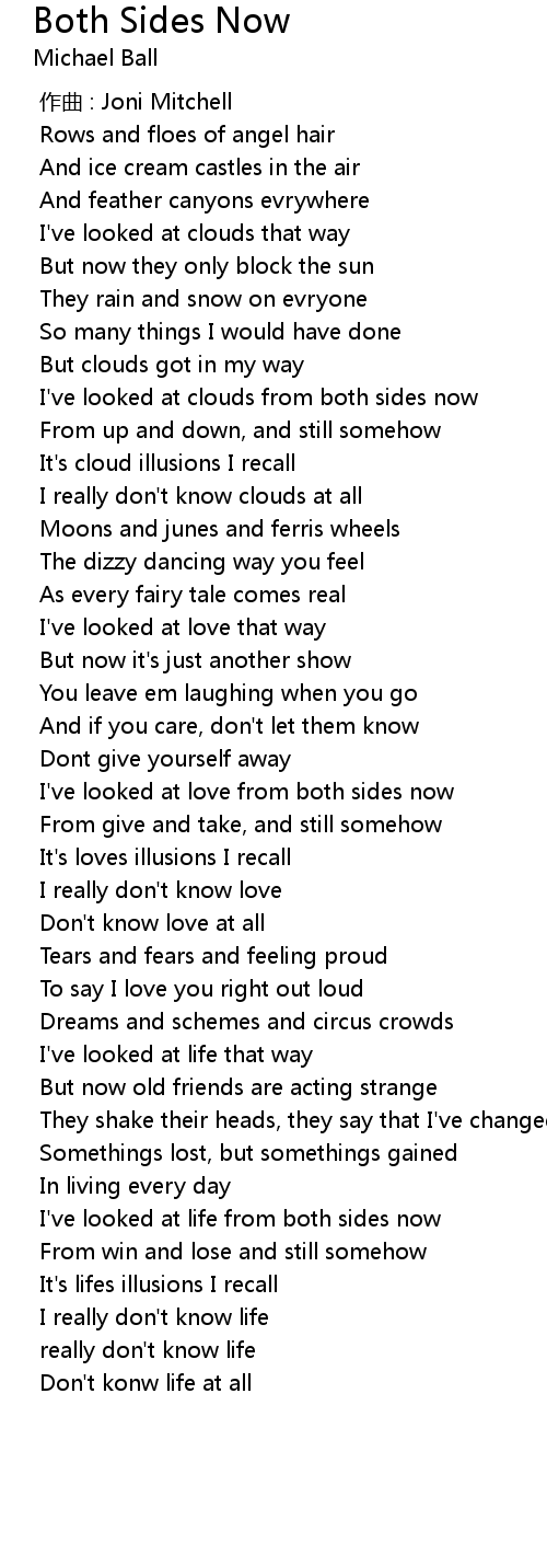 | [01:06.20] | I' ve looked at clouds from both sides now |