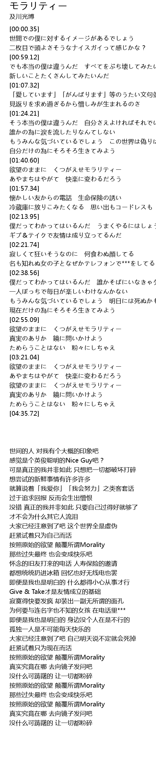 | [04:10.88] | 欲望のままに くつがえせモラリティー |