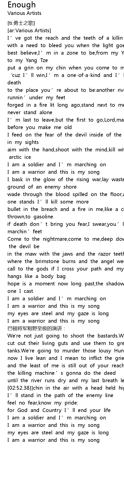 | [03:03.00] | I am a soldier and I ' m marching on |