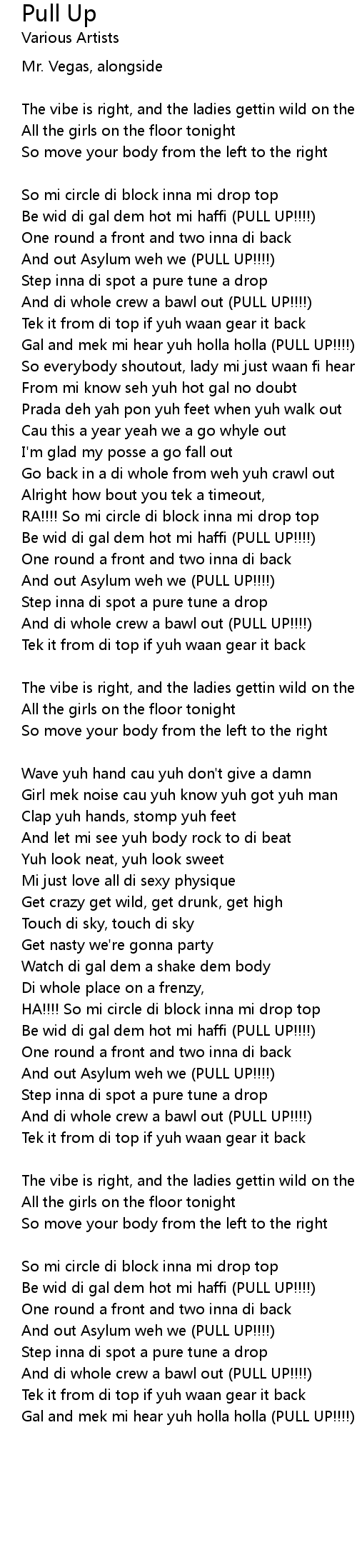 Gal and mek mi hear yuh holla holla (PULL UP!!!!) |