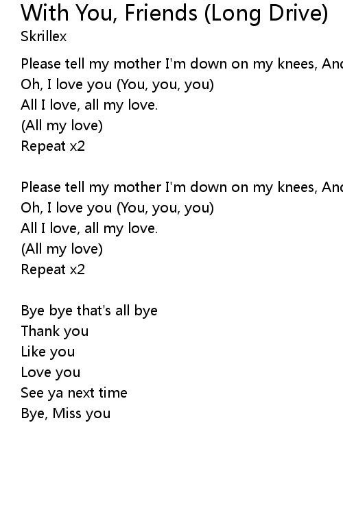 | Please tell my mother I'm down on my knees, And I really really miss you | |