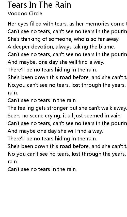 No.you can't see no tears, lost through the years, hiding the pain, tears in the rain. |