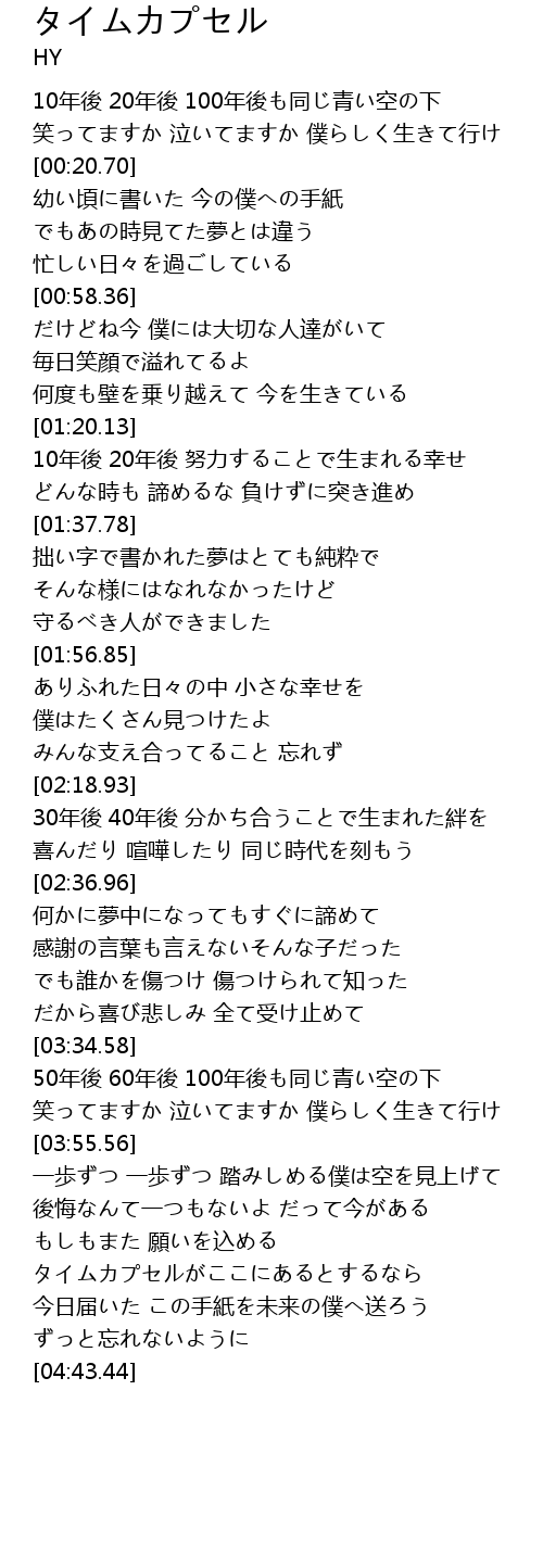 | [04:19.06] | タイムカプセルがここにあるとするなら |