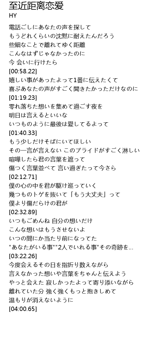 | [03:39.89] | やっと会えた 寂しかったよって寄り添いながら |