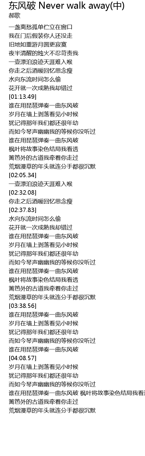 | [04:03.34] | 谁在用琵琶弹奏一曲东风破 |