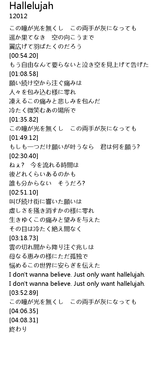 | [03:46.05] | I don't wanna believe. Just only want hallelujah. |