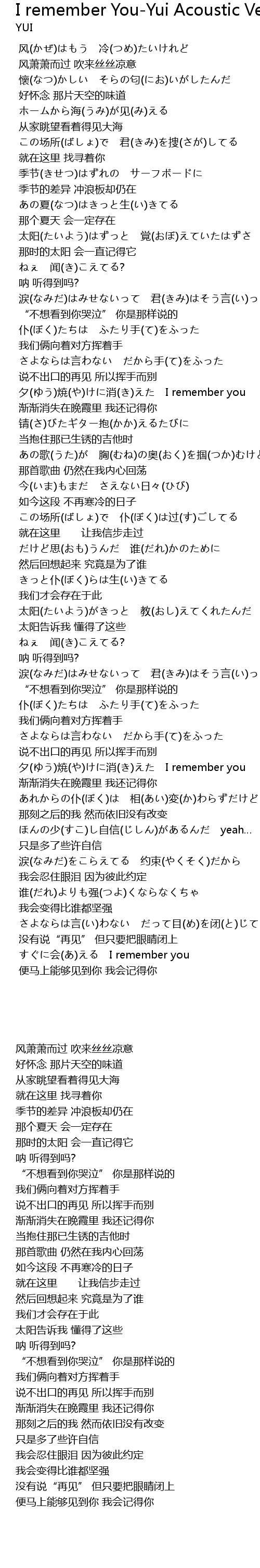 | Song | I remember You-Yui Acoustic Version- |