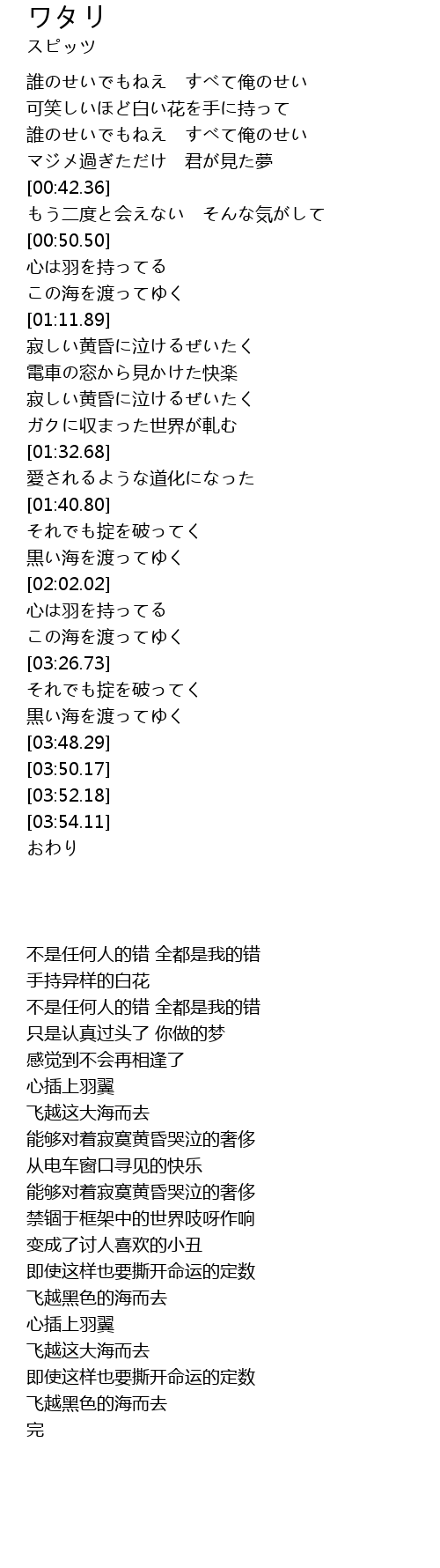 | [00:32.25] | 誰のせいでもねえ すべて俺のせい |
