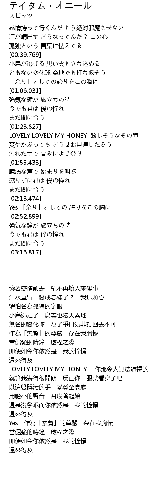 | [01:29.032] | LOVELY LOVELY MY HONEY 眩しそうなその瞳 |