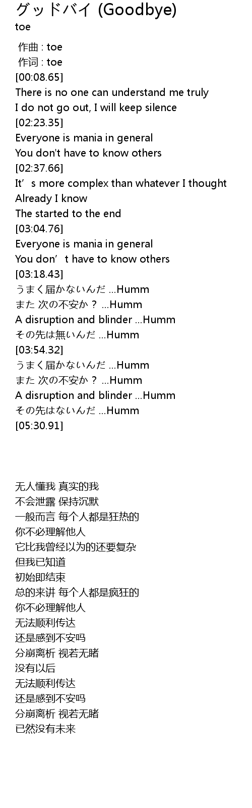 | [03:25.64] | うまく届かないんだ ...Humm |